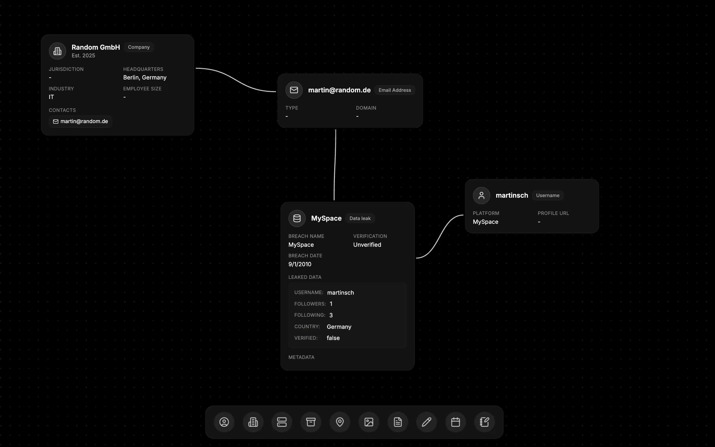 Use the Shapes node whenever you need to mark OSINT findings directly on the investigation canvas. Outline suspicious infrastructure, spotlight emerging links between entities, or sketch analytic hypotheses without switching tools. Every markup stays tethered to the graph so teammates interpret the same visual signals while reviewing the case.What the Shapes node stores